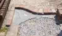 ただ単に撤去した後に砂利を敷いても面白くないので、レンガで縁取りしジュラストーンでペイビングすることにしました。 土で埋め直したので地固めの為しばらく放置しておくとともに砂利やモルタルを敷いて土台を造り、そこからジュラストーンを組み合わせて置いていきます。 |