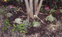 | 春に白やピンクの花を樹木全体に咲かせる木で、放っておくと10mくらいに生長することもあります。陽あたりが良く水はけの良い場所にシンボルツリーとして植えると、四季を感じる庭木になります。 |