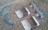 買ってきた部材はご覧のように家の壁に打ち付ける金属金具やコンクリートネジ、それに波板パネルを打ち付ける為の特殊な釘(傘クギ)です。 |