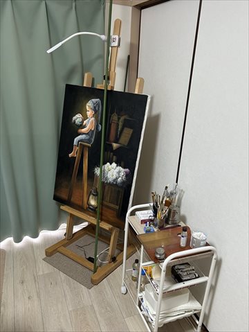 油絵は塗った絵の具が乾くまで次の作業ができないので、ずっと描き続けることができませんが、誰にも邪魔されない空間で没頭しながら楽しむことができる最近ではメインの趣味になってきました。