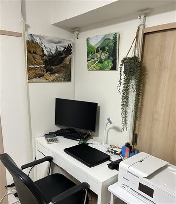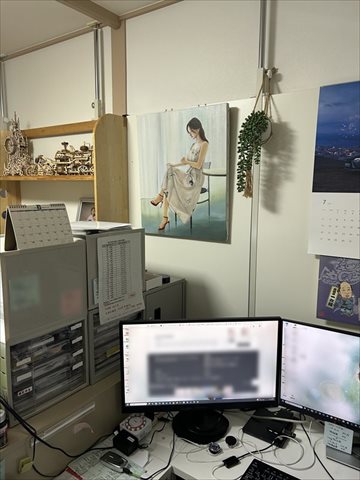 キャンバスの保管をはじめ、意外と場所を取る油絵・・しかも増え続けるばかりで減ることもないので、自宅とは別にアトリエ?を用意し、暇なときに油絵やパソコン編集する空間を確保しました。