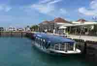 コバルトブルーの海に向かって真っ直ぐにのびる100mちょっとの桟橋です。 夕日を眺めるスポットとしても有名です。 |