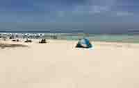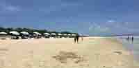 真っ白な砂と、真っ青な海のコントラストが目に痛いほどの海水浴場です。 |