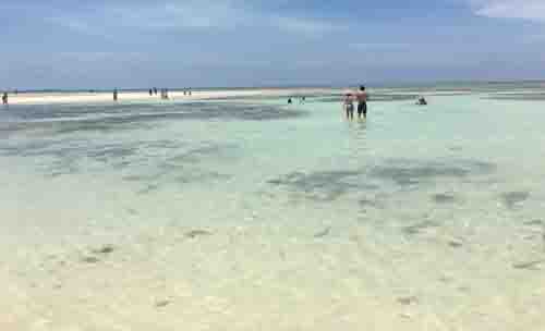 かなりの遠浅の砂浜で、潮が引くと沖合まで砂浜が浮き上がってきます。