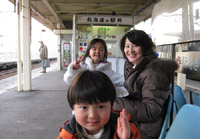 千歳空港から札幌へ向かうため、JRで移動です。福岡から空路2時間半、子供にとっては初めての北の大地です。 |