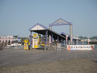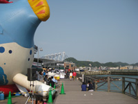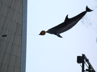 イルカショーだけでなく、実はここ下関水族館(海響館)ではイルカに触ることができます。 飼育員の方の合図で一頭のイルカがプールから上がってきて、それを触ってあげることができるのです。・・・表面を触ってみると“結構あたたかい”のでビックリしました。 |