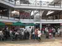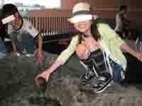 3階には水中の生き物を直接触れる小さな施設があり、多くの子供がヒトデやナマコを触って歓声をあげています。。 |