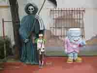 「地獄堂」と「呪われた第四病棟」が二つ並んでいます。 人が並ぶほどの人気ではありませんが、手前ではお化けの置物と記念撮影なんかもできます。 |