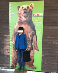 実物大の熊の写真と“背比べ”です。