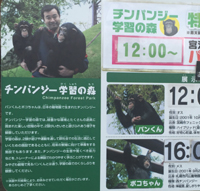 あのTV番組の「天才、志村どうぶつ園」で有名になったチンパンジーのパンくん。実際にはここの“チンパンジー学習の森”という施設の住人で、元気な時にはショーにも出ていたのですが、ここ最近は後輩に道を譲っています。 |