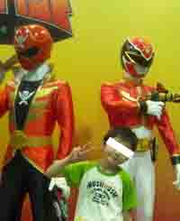 また、一画にはゴーカイジャーや仮面ライダーといった人形が設置してあり、触ったり一緒に写真を自由に撮ることもできます。 |