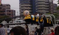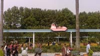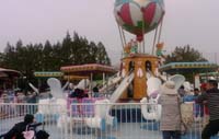 短い距離ですが、子供用アトラクションのコーナーの上空をゆっくり散歩するように動くへリサイクルです。晴れた日の園内を上から眺めることができ、子供(特に幼児には)人気のアトラクションの一つで、200円で乗ることができます。 |