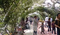 5月上旬が一番の見ごろとなるのがバラのトンネルです。30〜40mはあるでしょうか、園内通路に設けられたアーチのトンネルに白を中心に鮮やかなバラが咲き乱れ、通行人を驚かせてくれます。 勿論、このバラのアーチ・トンネルだけでなく、園内の至る所に大きな花壇が点在しているのも、かしいかえんシルバニアガーデンの特徴なんですが。 |