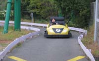 ジョットコースターの左隣にはゴーカートがあります。アクセルやブレーキに足が届く必要があるため身長制限があり、130cmに満たない子供は大人と一緒(二人乗り)でないと乗せてもらえません。 我が家の子供達も姉の方はギリギリ・セーフでしたが、弟は一人で乗せてもらえず父親と一緒でしたので「あまり楽しくなかった」と感想を漏らしていました。 |