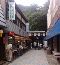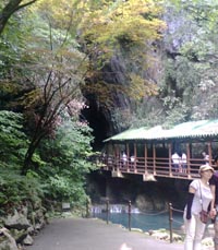 駐車場から入口に向かう道沿いは賑やかな商店街で、鍾乳石で作られた置物系のお土産を中心に、秋芳洞ならではの品物がズラリと並んでいいます。もちろん喫茶店も(数は少ないですが)いくつか有りました。 |