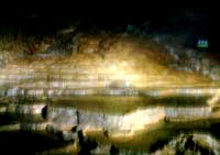 洞窟の中でも特に有名なのがこの百枚皿で、鍾乳石がお皿の縁のように堆積し、何枚も何枚も水を湛えた小さな丘になっている光景です。実際には500枚くらいの皿があるそうですが・・。 |