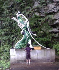 滝の横には大きな龍が・・・息子はこちらの方が興味津々です。 |