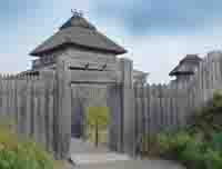 古代の王など支配者が住んでいたゾーンで、物見櫓や王の家、煮炊き小屋などの生活をしのばせる空間が再現されています。 |